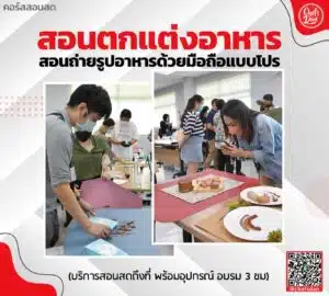 คอร์สสอนสด สอนตกแต่งอาหารฟู้ดสไตล์ลิสแบบมืออาชีพและสอนถ่ายรูปอาหารด้วยมือถือเพื่อสร้างยอดขาย!